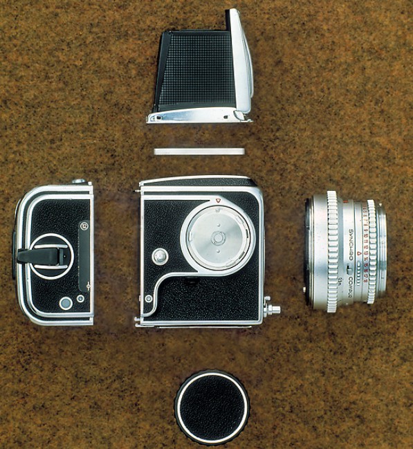 500C 相機的組裝十分簡易,由于采用鏡間快門取代了機身中的焦平面快門,鏡頭、膠片后背和取景器都可輕松更換。